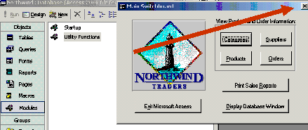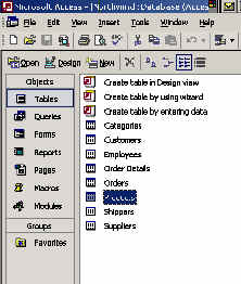 6: Close the Product Form (X). From the Database Window, click on Tables