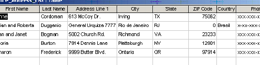 STEP 2: Now you will change the information in each cell. To change the information for your friends, click in each cell and simply type the new data -->>Click in the field. Highlight the text and type directly in the area. You can also click in the field, delete the data there, and enter your new information. Enter data for five people. They can be your real or imaginary friends. NOTE: When you add new information, the data is automatically saved in Access. If you want to undo an entry, go to EDIT -> Undo Typing, or use the CONTROL +Z keys on your keyboard.