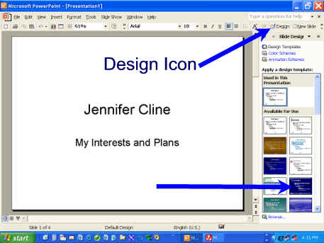 Title Slide, click on the icon that says DESIGN. A panel will open
