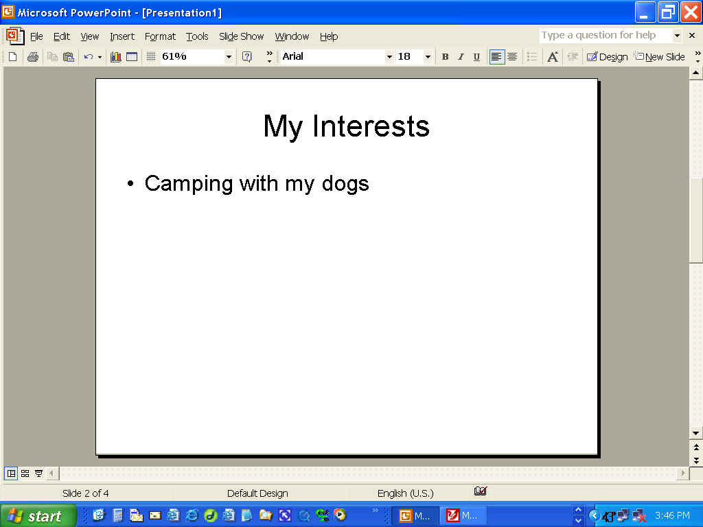 three slides: a TITLE slide, an INTERESTS slide, and a PLANS