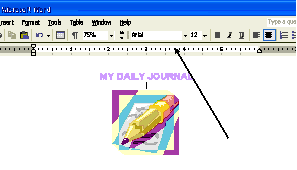 Write your name at the bottom of your page using the skills you learned when you wrote the title. In the example, I wrote my name in the Lucida Handwriting font, size 18. (My Name) Now your title page is complete. The last step in the process is to save your work. Actually, you should save your page immediately after you open it and several times after that!