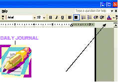 Once you have the image on your page, you can resize it. Remember these rules. When you click on the image, you will see little boxes show up to tell you the image is selected. Those boxes are called "handles." If you drag the handles from any corner directly toward the middle, the image will become smaller and keep the same proportions (See #1). If you drag the handles along any of the sides, you can distort the picture (See # 2 and 3). Change the image you chose until you feel comfortable with the process. Practice bringing other images and changing them around. Have fun. Change the font, color and size of the your title and practice what you have learned.