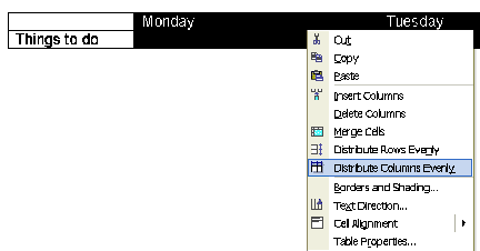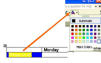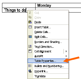 Now let's change the color of a cell. RIGHT- click in the "Things to do" cell. Select Table Properties. |